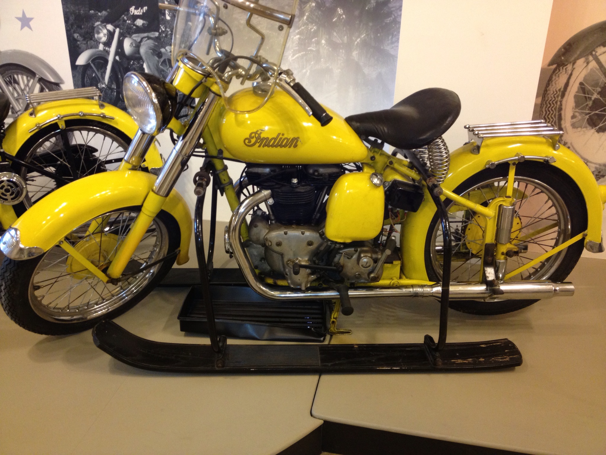 I learned that Indian made more than just bikes. They made a 4-wheel Roadster car for 4 to 5 years in the 20’s with a modified motorcycle engine. I also learned that they made marine engines for a bit too. It was cool to see how creative they got to sell the bike, like adding snow skies or making a toboggan.